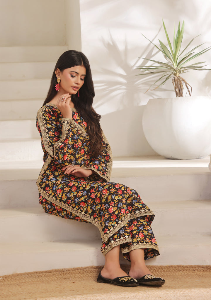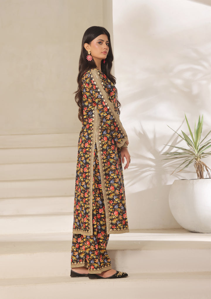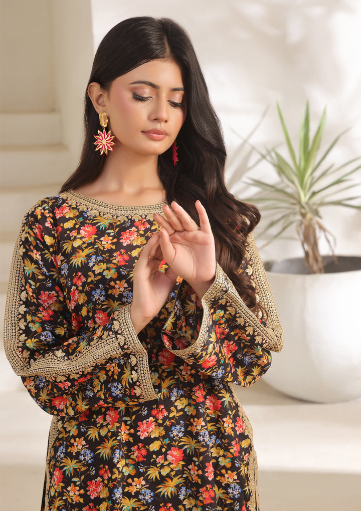 lack Beauty – All-Over Gold Lace A tapestry of opulence and grace, this black lawn outfit is adorned with shimmering gold lace in an all-over print. Airy yet bold, it’s tailored for those who embody elegance with a touch of grandeur. Where tradition meets radiant finesse.